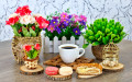 Galeries de Puzzles » Fleurs » Tasse de café, macarons et fleurs