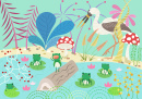 Rainette aux yeux rouges grimpant aux feuilles rouges