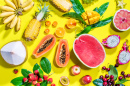 Nature morte ensoleillée avec fleurs et fruits du jardin