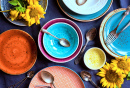 Assiettes et bols colorés vintage