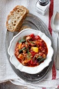 Une soupière de bouillon de bœuf chaud et tortellini italien
