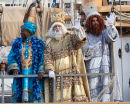 Une procession festive en costumes folkloriques et masques