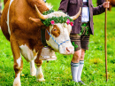 Vache décorée de manière festive dans les Alpes