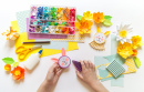 Fleuriste réalisant un bouquet de fleurs de freesia