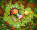 Un chien corgi heureux qui s’installe dans des pissenlits