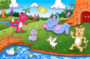 Enfants et animaux sur l’aire de jeux