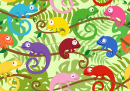 Drôles de caméléons parmi les feuilles tropicales
