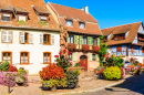 Péniches colorées à Cowichan Bay, C.-B., Canada