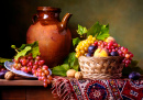Nature morte ensoleillée avec fleurs et fruits du jardin