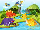 Groupe d’hommes des cavernes et de dinosaures de dessins animés