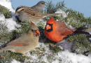 Colombe paon blanche parmi les fleurs de muscari bleues
