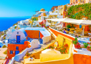 Chaises longues et parasol avec vue sur la mer et les îles tropicales. Prise en Thaïlande.