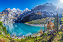 Incroyable lac turquoise d’Oeschinen, Suisse