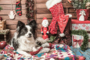 Un chien au pied du sapin de Noël