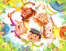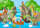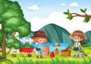 Scène d’arrière-cour avec des enfants et des animaux domestiques